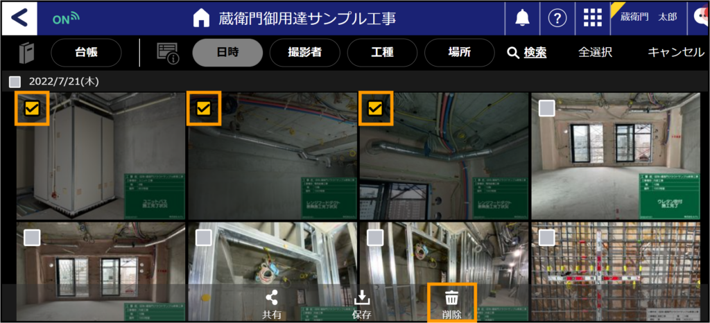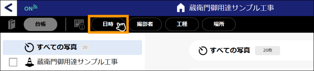 復元後、工事一覧の「写真」から「クラウド台帳」を開くと写真が「すべての写真(写真一覧)」に再度表示されます。