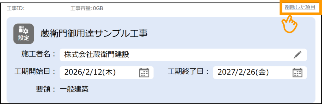 画面上の「削除した項目」を開き、先ほど削除した写真を復元します。