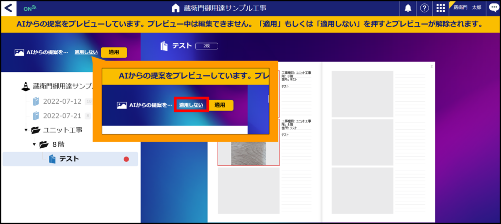 「クラウド台帳」でAIからの提案を「適用しない」と選択した写真を、再度AIで自動仕分けしたい場合は、「一度写真を削除してから復元する」ことで再実行が可能です。