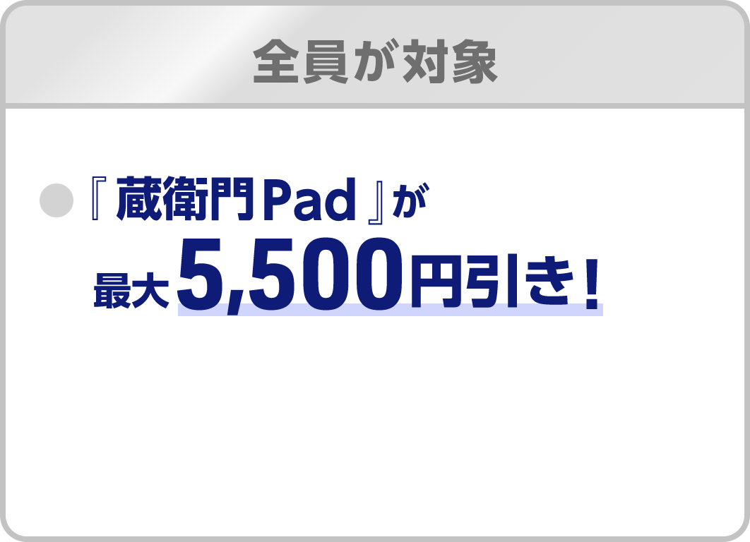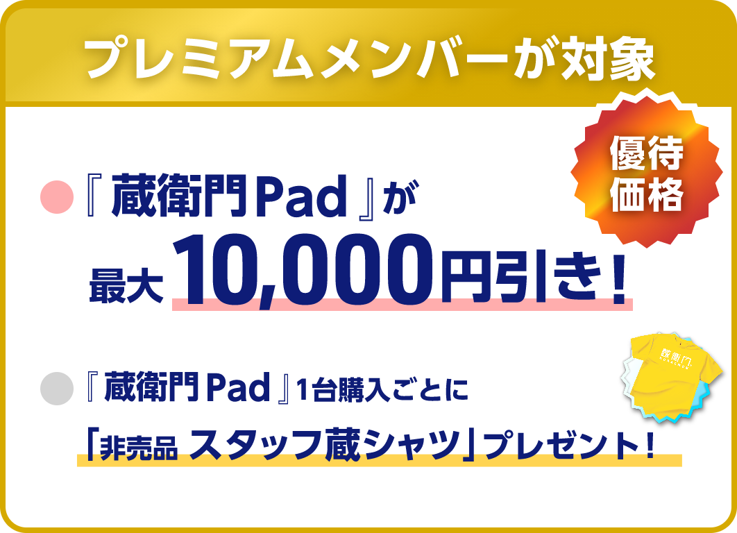 全『蔵衛門Pad』が対象!最大10,000円引き