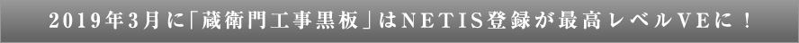 「蔵衛門工事黒板」は2017年1月にNETISに登録。2019年3月には最高位評価レベルの「VE(活用効果評価済み技術)」(※1)となりました。