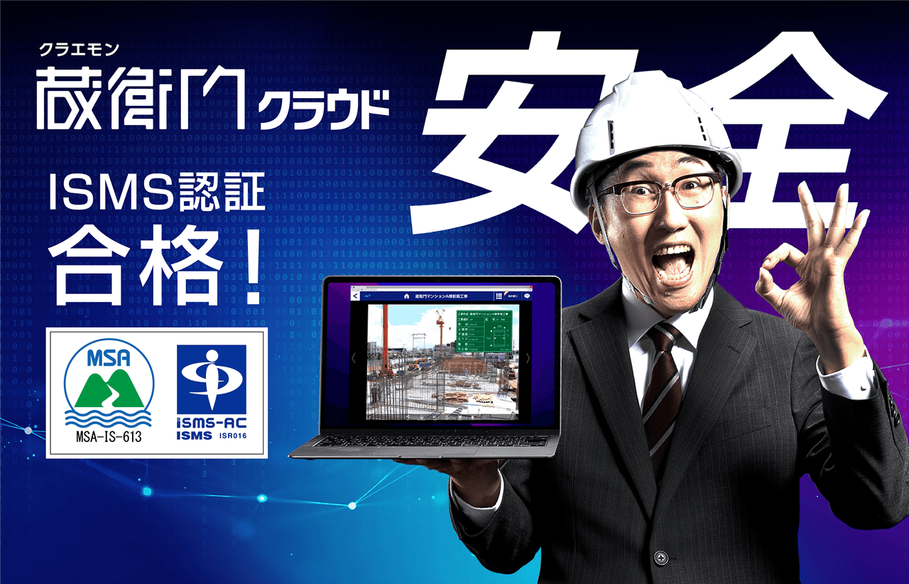 『蔵衛門クラウド』の導入社数増加を受け、重要な機密情報である工事写真情報を適切に管理する体制や運用の構築・強化を行い、これまで以上に安心してサービスを利用・導入いただくため、ISMSの国際規格の認証を取得しました。