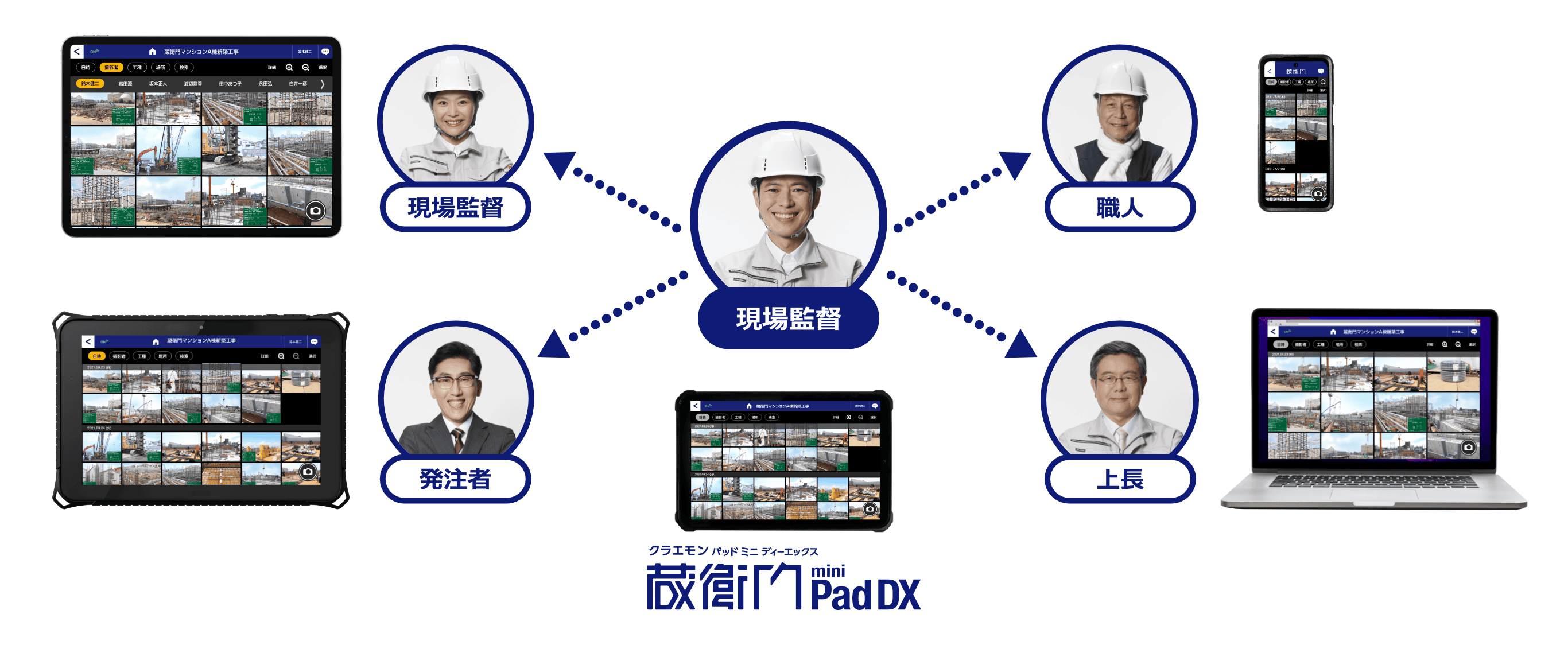 『蔵衛門Pad Tough DX』『蔵衛門Pad mini DX』は、耐熱性能だけでなくIP68(防水・防塵性能)、1m以上の耐落下テストをクリア。堅牢仕様の業務用タブレットの平均価格が10万円を越える中、5万円を切るコストパフォーマンスでの提供となります。本体には、クラウドと連携する施工管理アプリを標準搭載。電子小黒板を使うことで工事写真を撮る時間を短縮、酷暑の現場での作業時間を減らし、現場で働く人の命も守ります。