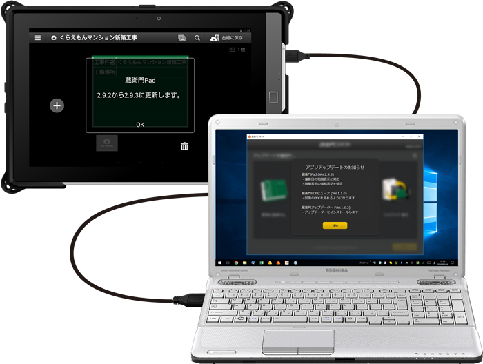 可能になりました 今まで蔵衛門PadはWi-Fiを利用しなければアップデートをすることができませんでした。最新版の蔵衛門コネクトでは、インターネットに接続したパソコンであれば、蔵衛門Padをアップデートすることができます。