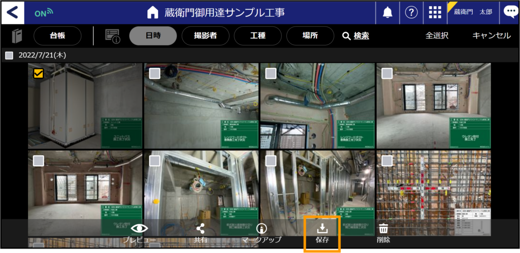 『蔵衛門プレミアム』なら、一括で写真を保存することができます。