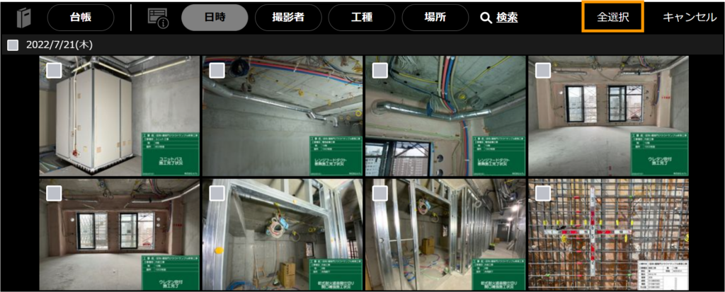 3.右上の「全選択」をクリックして、すべての写真にチェックがついてることを確認してください。