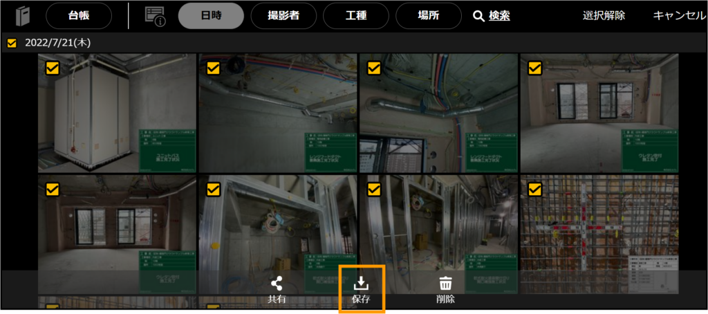 「保存」ボタンをクリックすると、一括で写真のダウンロードができます。
