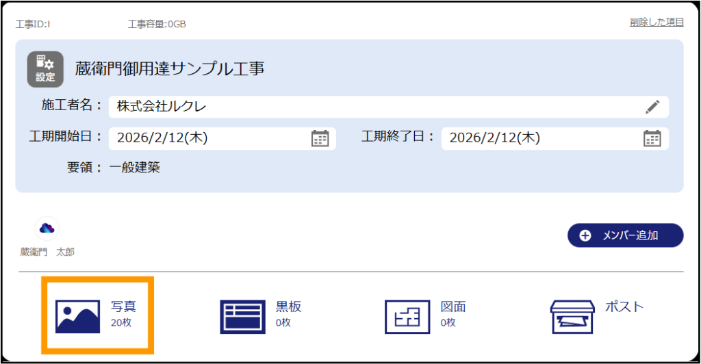 ※「クラウド台帳」対応工事の場合、「写真」をクリックすると写真一覧ではなく最初に「台帳」へ移動します。