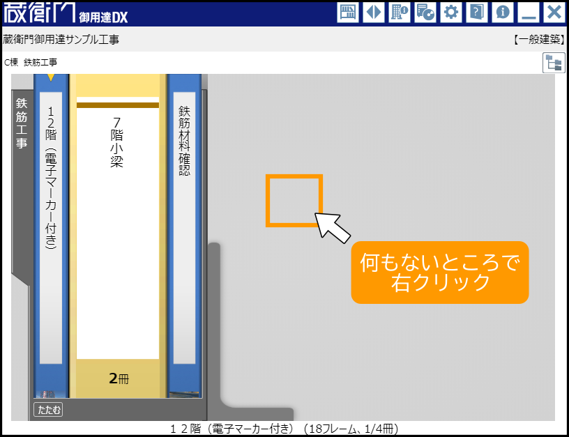1.本棚画面の空いている部分を右クリックします。