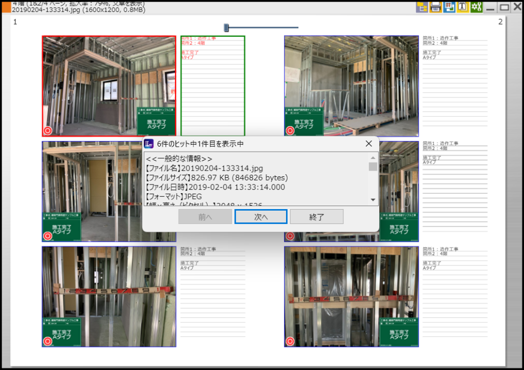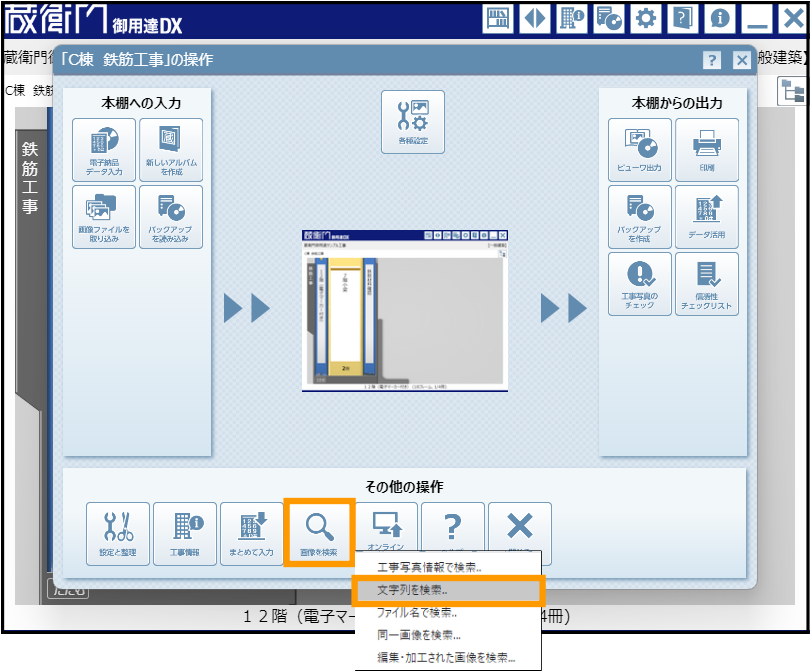 『蔵衛門御用達』では黒板の情報を使って検索することで、黒板に記入した工種などの情報から写真を簡単に見つけることができます。