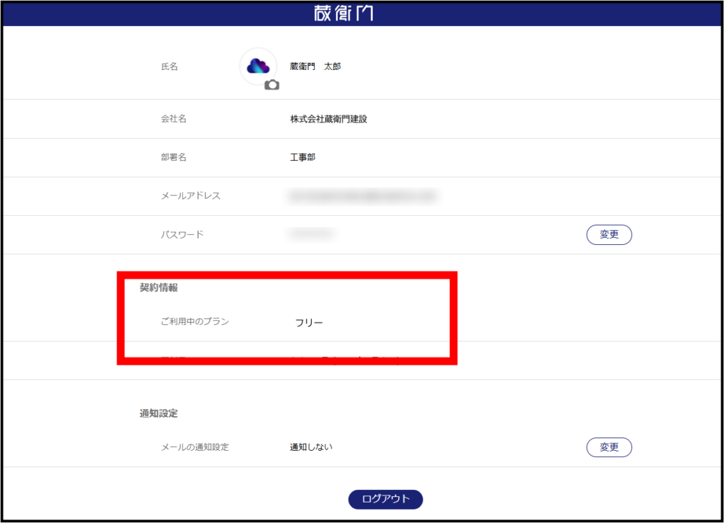 次に、『蔵衛門クラウド』のアカウント情報から契約情報にある「ご利用中のプラン」をご確認ください。